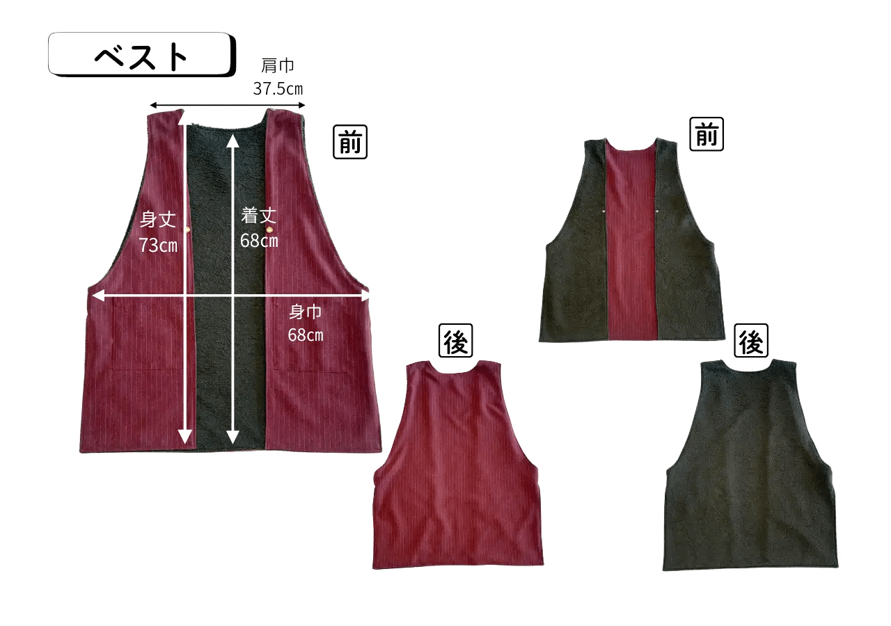 ※袖口は全てブラック、ベスト表面はチャコールグレーです。