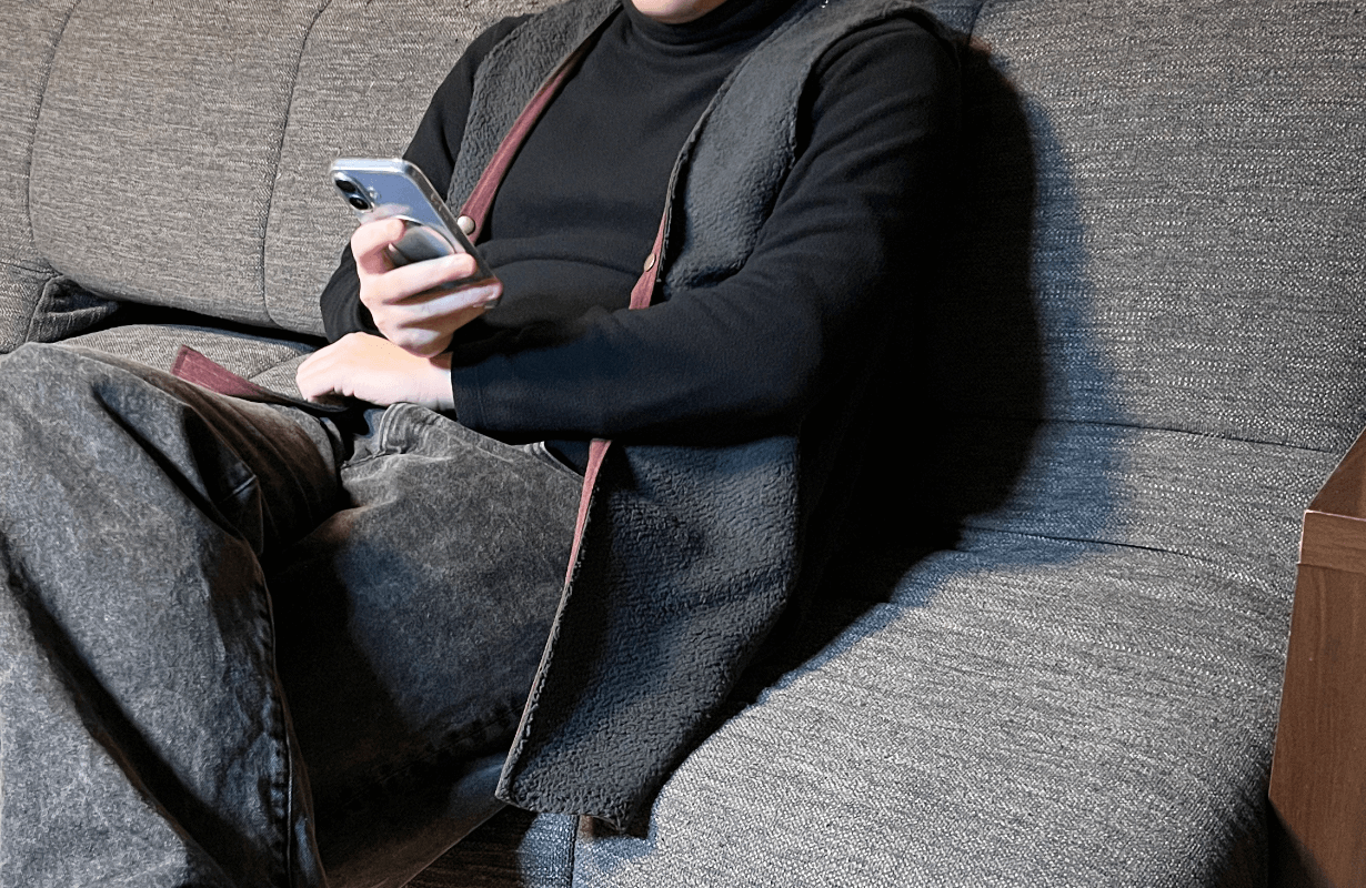 ③ベスト単体着用:屋内や車内での体温調節、またはシャツの上のアクセントとして。