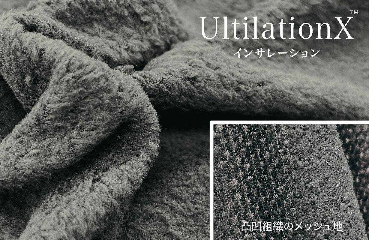 特殊な「嵩高なメッシュ構造」が体温で温められた空気を繊維の隙間に強力にキープ。物理的な厚みに頼ることなく、ダウンのような「デットエア」による保温効果を生み出します。